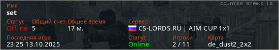 Играет на Counter Strike 1.6 сервере. Страна: РоссияПервый раз замечен 05:49 20.09.2024