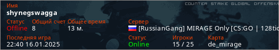 Играет на Counter Strike Global Offensive сервере. Страна: РоссияПервый раз замечен 01:51 10.01.2025