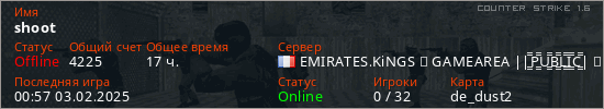 Играет на Counter Strike 1.6 сервере. Страна: ФранцияПервый раз замечен 14:31 29.12.2024