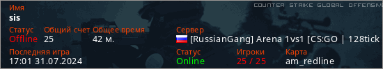 Играет на Counter Strike Global Offensive сервере. Страна: РоссияПервый раз замечен 23:44 29.07.2024