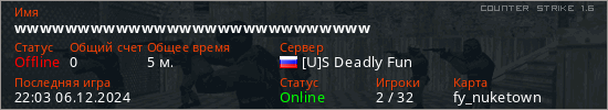Играет на Counter Strike 1.6 сервере. Страна: РоссияПервый раз замечен 21:57 06.12.2024