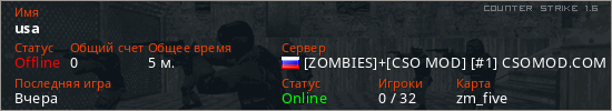 Последний раз был в сети Вчера Игрок с таким ником замечен на 25 серверах