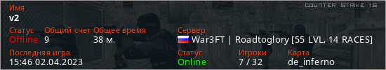 Играет на Counter Strike 1.6 сервере. Страна: РоссияПервый раз замечен 19:52 24.12.2021