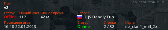 Играет на Counter Strike 1.6 сервере. Страна: РоссияПервый раз замечен 16:09 22.01.2023
