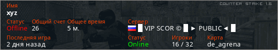 Последний раз был в сети 2 дня назад Игрок с таким ником замечен на 32 серверах