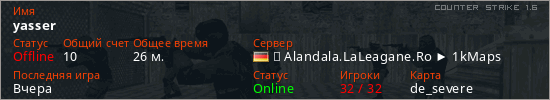 Последний раз был в сети Вчера Игрок с таким ником замечен на 13 серверах