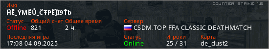 Последний раз был в сети 17:08 04.09.2025 Игрок с таким ником замечен на 15 серверах