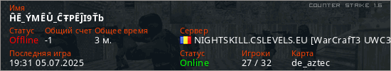 Последний раз был в сети 19:31 05.07.2025 Игрок с таким ником замечен на 15 серверах