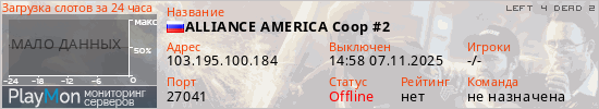 Общая информация ID: 67164 Ссылка: https://playmon.ru/server/103.195.100.184:27041 Адрес: 103.195.100.184:27041 Игроки: 0/25 Статус: Выключен Владелец: Не определён