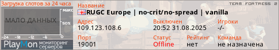 RUGC Europe | no-crit/no-spread | vanilla представлен в виде сервера тф2. Из всех имеющихся на сайте модификаций игровых серверов, вам может понравиться Jump серверы tf2. А для быстрой навигации по всем меткам - используйте главную страницу игры Team Fortress 2.