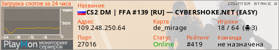 CS2 DM | FFA #139 [RU] — CYBERSHOKE.NET (EASY) представлен в виде