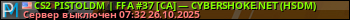 Баннеры сервера CS2 PISTOLDM | FFA #37 [CA] — CYBERSHOKE.NET (HSDM)