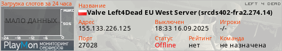Общая информация ID: 62745 Ссылка: https://playmon.ru/server/155.133.226.125:27028 Адрес: 155.133.226.125:27028 Игроки: 0/4 Статус: Выключен Владелец: Не определён