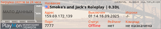 Общая информация ID: 65742 Ссылка: https://playmon.ru/server/159.69.172.139:7777 Версия: 1.4.0.2783 Адрес: 159.69.172.139:7777 Игроки: 0/96 Статус: Выключен Владелец: Не определён