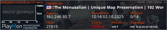 ✦The Monusalian | Unique Map Preservation | 102 Worlds✦ представлен в виде сервера тф2. Из всех имеющихся на сайте модификаций игровых серверов, вам может понравиться Jump серверы tf2. А для быстрой навигации по всем меткам - используйте главную страницу игры Team Fortress 2.