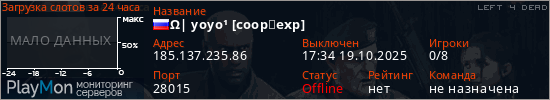 Общая информация ID: 40988 Ссылка: https://playmon.ru/server/185.137.235.86:28015 Адрес: 185.137.235.86:28015 Игроки: 0/8 Статус: Выключен Владелец: Не определён
