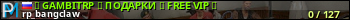 Баннеры сервера ⋙ GAMBITRP ╽ ПОДАРКИ ╽ FREE VIP ⋘