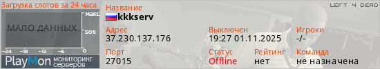 Общая информация ID: 69191 Ссылка: https://playmon.ru/server/37.230.137.176:27015 Адрес: 37.230.137.176:27015 Игроки: 0/9 Статус: Выключен Владелец: Не определён