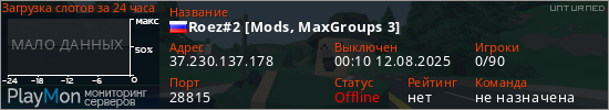 Roez#2 [Mods, MaxGroups 3] представлен в виде сервера Unturned. Из всех имеющихся на сайте модификаций игровых серверов, вам может понравиться PvP серверы unturned. А для быстрой навигации по всем меткам - используйте главную страницу игры Unturned.