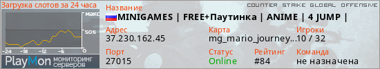 ID: 13003Ссылка: https://playmon.ru/server/37.230.162.45:27015