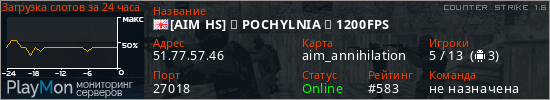 [AIM HS] ★ POCHYLNIA ★ 1200FPS представлен в виде сервера кс 1.6. Из всех имеющихся на сайте модификаций игровых серверов, наша система поставила метку AIM сервера cs. В нашем мониторинге игровых серверов вы так же можете найти быструю навигацию по всем меткам - используйте главную страницу игры Counter Strike 1.6.