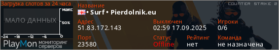 • Surf • Pierdolnik.eu представлен в виде сервера кс 2. Из всех имеющихся на сайте модификаций игровых серверов, вам может понравиться Retake серверы cs2. А для быстрой навигации по всем меткам - используйте главную страницу игры Counter Strike 2.