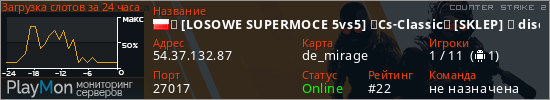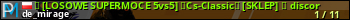 ★ [LOSOWE SUPERMOCE 5vs5] ★Cs-Classic★ [SKLEP] ★ discor представлен в виде сервера кс 2. Из всех имеющихся на сайте модификаций игровых серверов, наша система поставила метку Classic сервера cs2. В нашем мониторинге игровых серверов вы так же можете найти где поиграть на 5vs5 сервере кс 2.