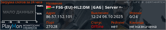 Общая информация ID: 67211 Ссылка: https://playmon.ru/server/86.57.152.101:27028 Адрес: 86.57.152.101:27028 Игроки: 0/24 Статус: Выключен Владелец: Не определён