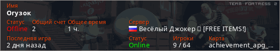 Играет на Team Fortress 2 сервере. Страна: РоссияПервый раз замечен 19:03 13.03.2026