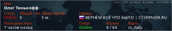 Последний раз был в сети 5 часов назад Игрок с таким ником замечен на 4 серверах