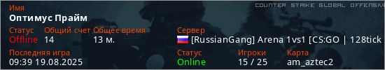 Играет на Counter Strike Global Offensive сервере. Страна: РоссияПервый раз замечен 19:43 22.12.2024