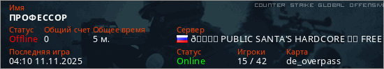 Играет на Counter Strike Global Offensive сервере. Страна: РоссияПервый раз замечен 03:58 11.11.2025