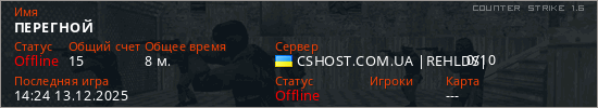 Играет на Counter Strike 1.6 сервере. Страна: УкраинаПервый раз замечен 13:53 13.12.2025