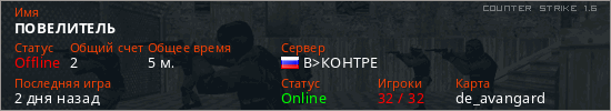 Последний раз был в сети 2 дня назад Игрок с таким ником замечен на 7 серверах