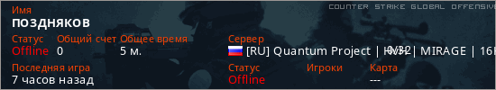 Играет на Counter Strike Global Offensive сервере. Страна: РоссияПервый раз замечен 14:25 25.04.2026