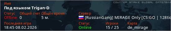 Играет на Counter Strike Global Offensive сервере. Страна: РоссияПервый раз замечен 17:42 08.02.2026