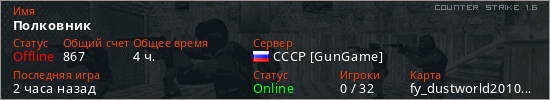 Играет на Counter Strike 1.6 сервере. Страна: РоссияПервый раз замечен 19:29 18.10.2025