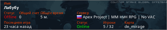 Играет на Counter Strike Global Offensive сервере. Страна: РоссияПервый раз замечен 22:42 24.04.2026