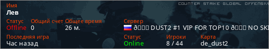 Последний раз был в сети Вчера Игрок с таким ником замечен на 27 серверах