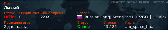 Играет на Counter Strike Global Offensive сервере. Страна: РоссияПервый раз замечен 19:37 11.02.2026