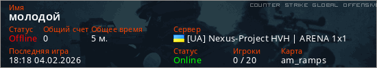 Играет на Counter Strike Global Offensive сервере. Страна: УкраинаПервый раз замечен 17:50 04.02.2026