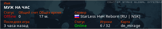 Играет на Counter Strike Global Offensive сервере. Страна: РоссияПервый раз замечен 00:54 30.12.2025