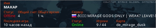 Играет на Counter Strike Global Offensive сервере. Страна: РоссияПервый раз замечен 20:15 08.02.2024