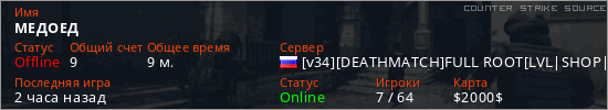 Играет на Counter Strike Source сервере. Страна: РоссияПервый раз замечен 15:44 16.03.2026