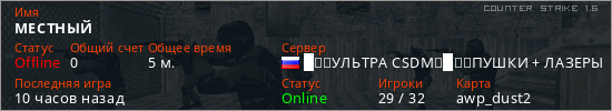 Последний раз был в сети 6 часов назад Игрок с таким ником замечен на 7 серверах
