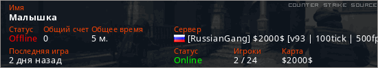 Играет на Counter Strike Source сервере. Страна: РоссияПервый раз замечен 10:03 21.04.2026