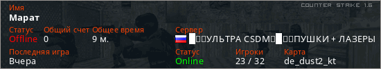 Последний раз был в сети Вчера Игрок с таким ником замечен на 20 серверах