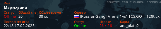 Играет на Counter Strike Global Offensive сервере. Страна: РоссияПервый раз замечен 20:02 12.02.2025