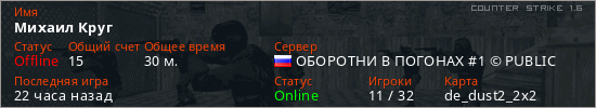 Последний раз был в сети 20 часов назад Игрок с таким ником замечен на 13 серверах