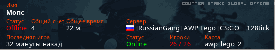 Играет на Counter Strike Global Offensive сервере. Страна: РоссияПервый раз замечен 21:19 10.03.2026